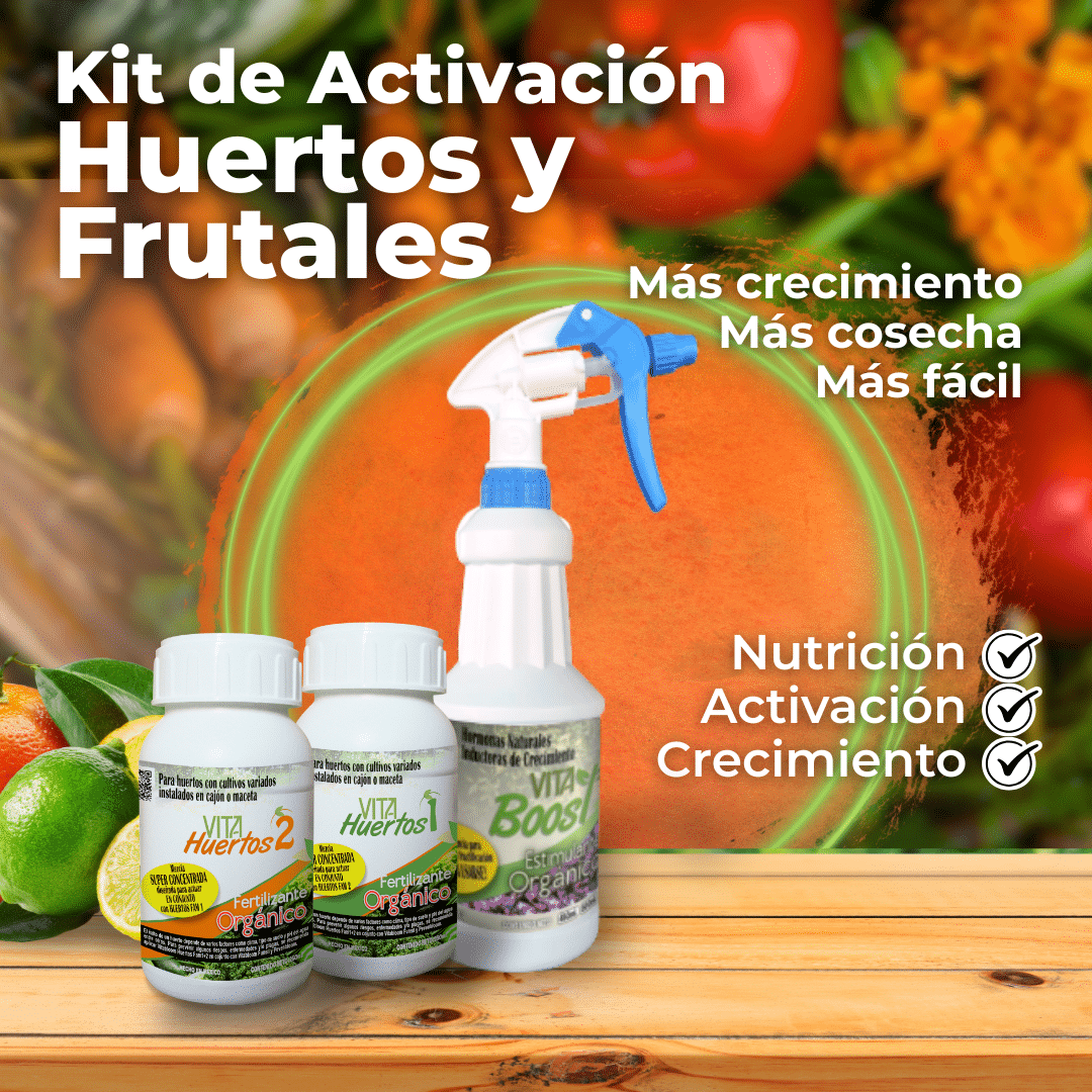 Juntos, estos productos ofrecen una nutrición completa y estimulación natural para cosechas abundantes y saludables en tus árboles frutales y en tu huerto sin importar si lo tienes en macetas, cajón o en suelo directo.