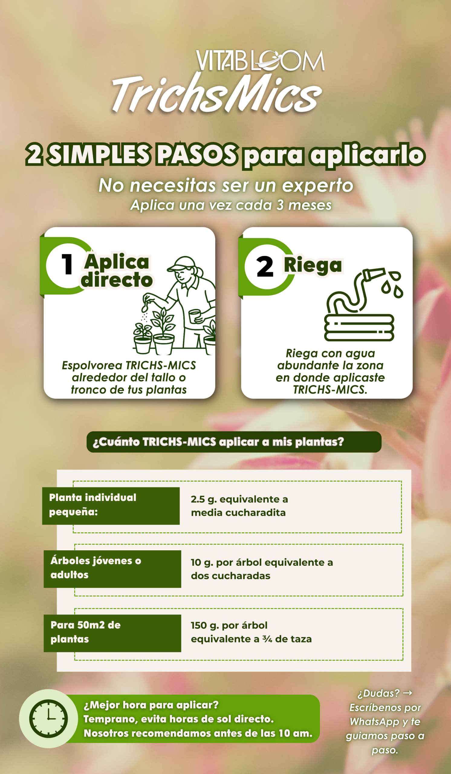 Solo aplícalo directo al suelo, lo más cerca de la raíz… ¡y listo!