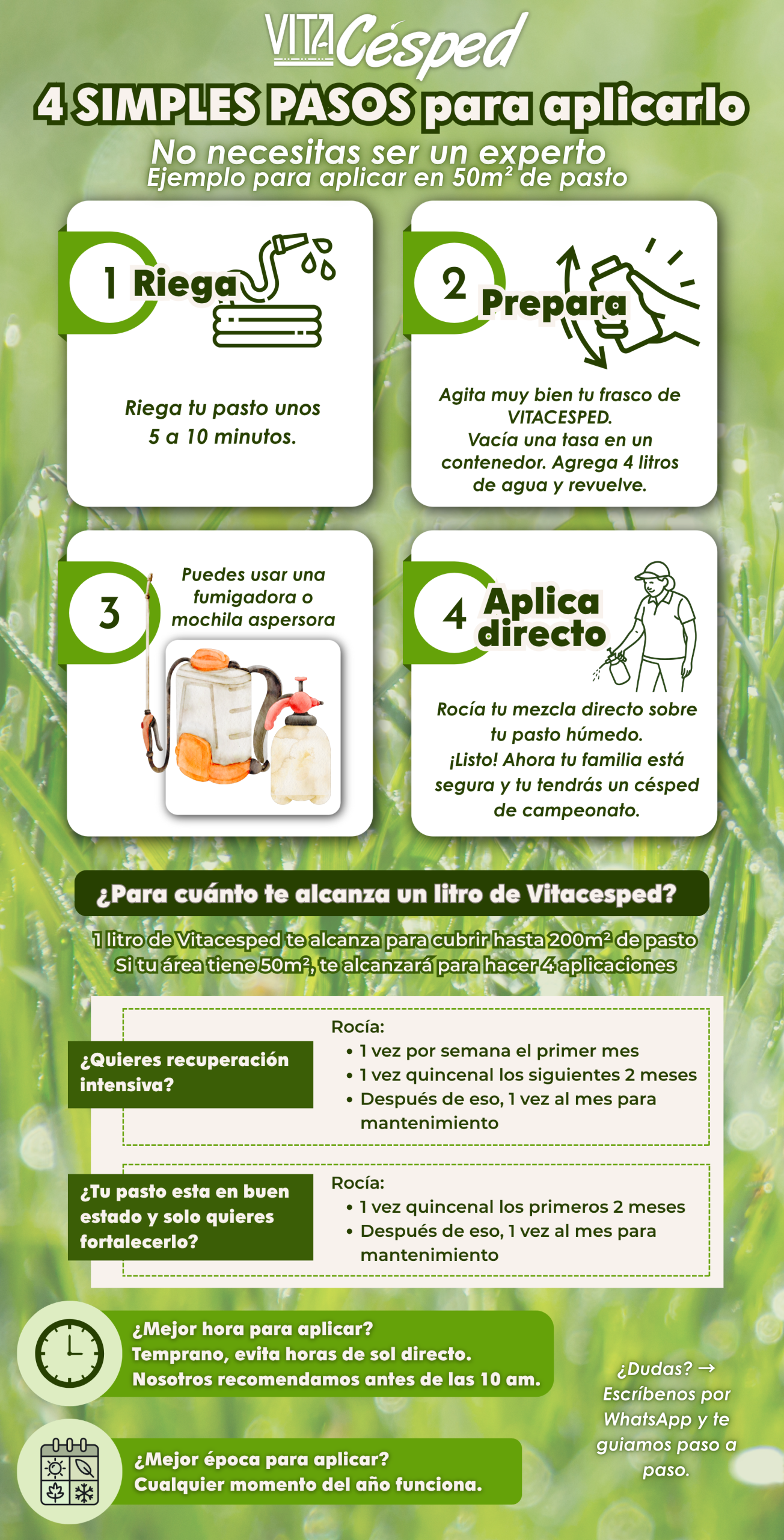 No, VITACESPED es orgánico, no quema el pasto como los químicos. Si apicas de más, no pasa nada malo, aunque tampoco se acelera su resultado.