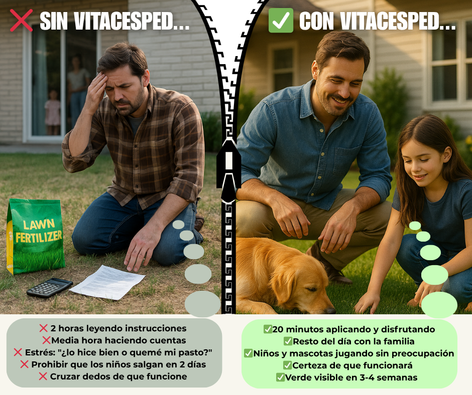 Pero honestamente, en 4 años solo 6 de cada 100 clientes han pedido reembolso. VITACESPED funciona en la gran mayoría de jardines.