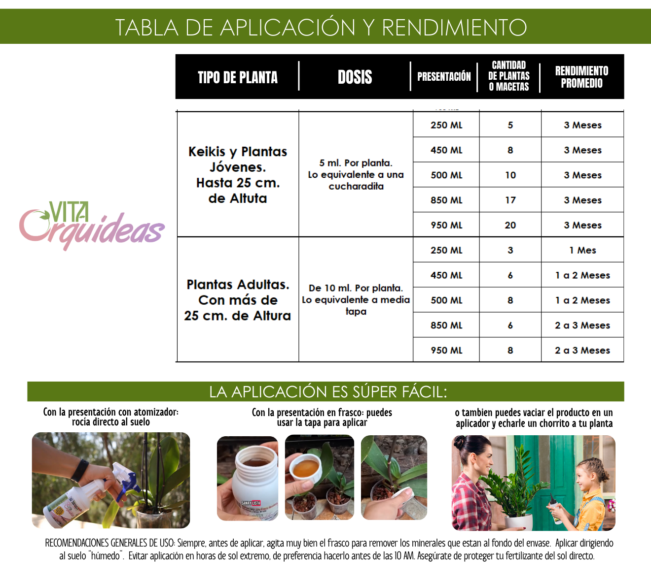Se recomienda su aplicación con atomizador DE USO RUDO porque el producto viene enriquecido con elementos que podrían ocasionar que un atomizador sencillo se tape muy facilmente, por eso es tan importante que se agite vigorosamente antes de su uso, y que se utilice un aplicador de uso rudo, jarrita o recipiente con boquilla.